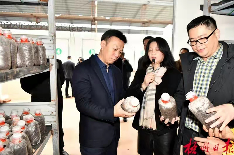2月11日上午,廣東省肇慶市封開縣委副書記、縣長丘燦輝,封開縣委副書記韋賢康一行到公司食用菌基地考察調研。梧州市萬秀區委副書記、區長易潔,副區長黃沛森陪同。
